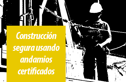 Los andamios en las obras de construcción deben cumplir los requerimientos de seguridad tanto de la seguridad por peso y ocupación en el propio andamio como de seguridad en la colocación de objetos y fijado de la estructura.